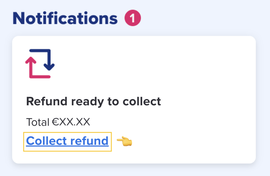 Step 3: If a refund is ready to collect, it will show at the top of the page with an option to Collect refund.