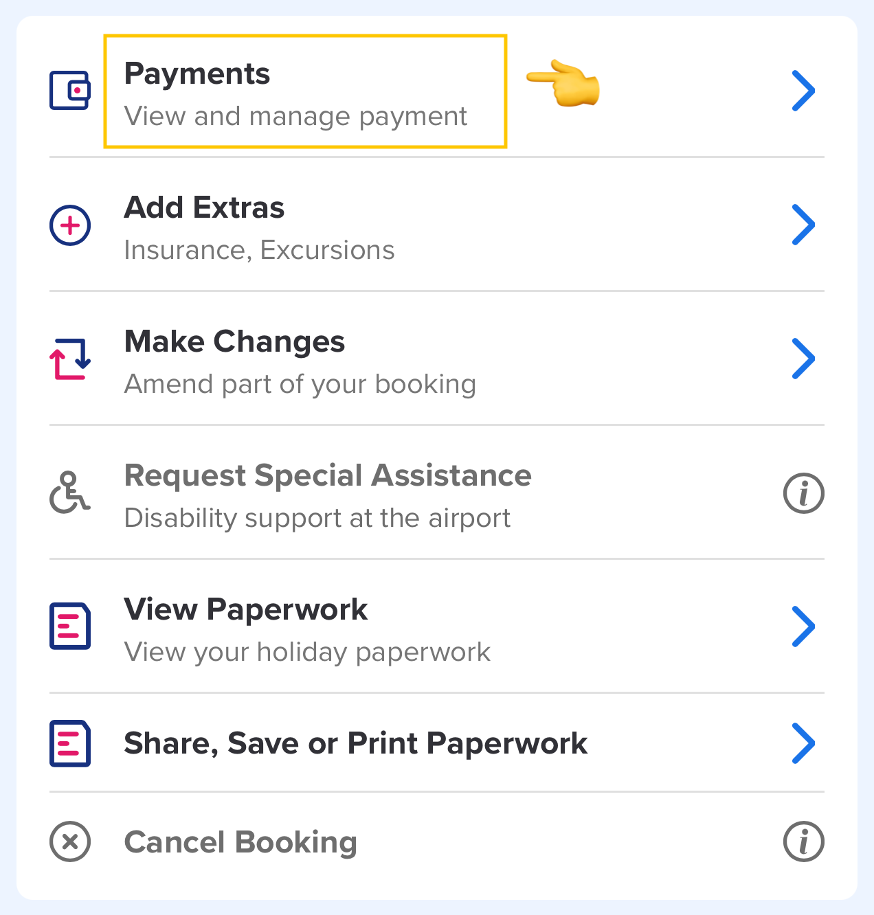 Step 2: Tap the Booking you are due a refund on and scroll down until you see the Payments section, tap to open.